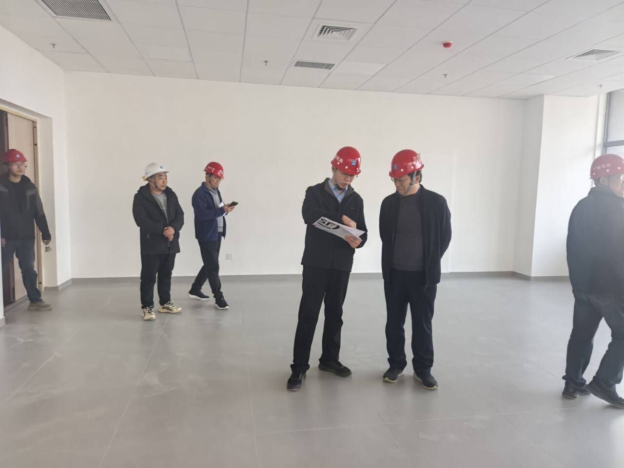 调研期间,马建民一行对照实验室功能布局规划图,详细检查了C1实验楼各实训车间及实训室的设施建设情况,并就关键环节的施工细节与现场相关人员进行了深入交流。
