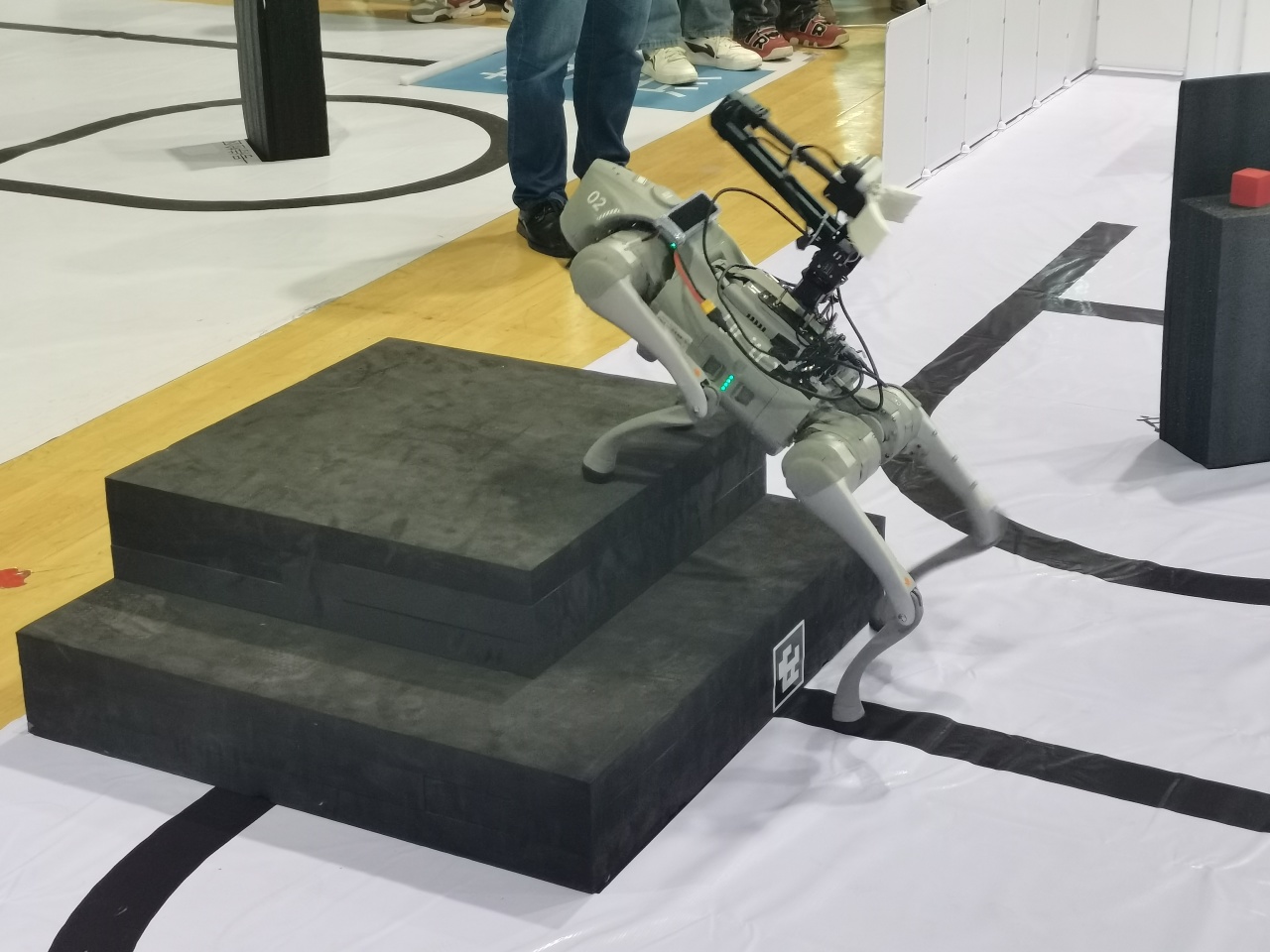 竞赛过程中,遵循“智能、准确、高效”的竞技要求,william威廉亚洲官方参赛团队高效沟通、密切配合,认真检查场地、沉着启动作品、仔细观察运行,以满分的优异成绩夺得四足多模态巡检赛项冠军。