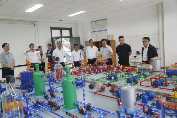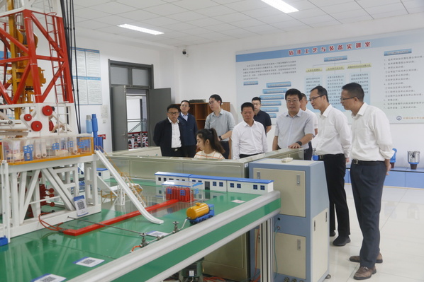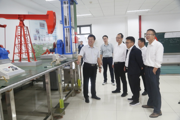 梁浩一行先后参观了数控加工技术实训室、虚拟仿真技术体验室及钻井、采油等石油工业实训室,对中心的工程实践训练科目、虚拟仿真技术开发及教学应用进行了重点观摩。