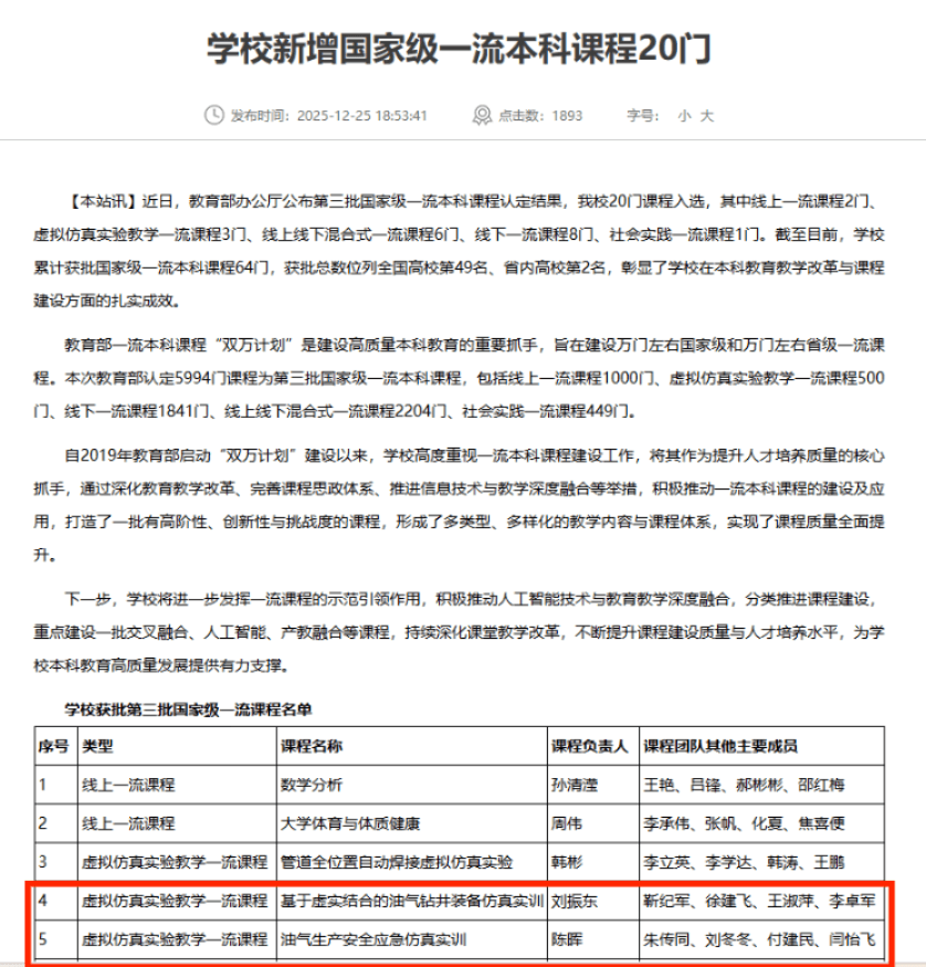 中心以虚拟仿真技术为核心,对自主研发的石油仿真系列教学装备进行了数智化升级;构建“数字孪生+AI”双驱动多模态智慧实践平台,形成“五化同步”实验教学新范式;高质量完成课程知识图谱建设投入教学应用,有效赋能个性化学习与教学精准化开展;科技赋能构建优质资源生态,开发的虚拟仿真动画教学资源已达1300多小时时长;积极申报william威廉亚洲官方“人工智能+高等教育”典型案例,报送的“数字资源‘走出去’案例”已顺利通过省级遴选,进入全国评选阶段,进一步展现中心优质数字资源的建设水平。