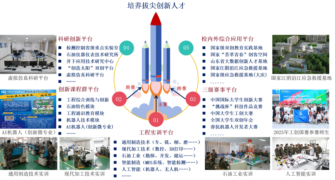 中心以工程实训为基础、以石油工业训练为特色,深度融合人工智能、虚拟仿真等信息技术,全面贯彻OBE教学理念;全年顺利完成校内40多个专业、110余个班级的工程实训,以及化学、电气、俄语等专业1000余名学生的现场及认识实习;面向全校开设《劳动教育与实践》、《走近人工智能》等14门公选课程;并承接中国地质大学(武汉)、中国矿业大学(北京)等外地高校学生实训近**次;“训创一体”的工程实践教学模式有效提升了学生的工程应用与创新能力。