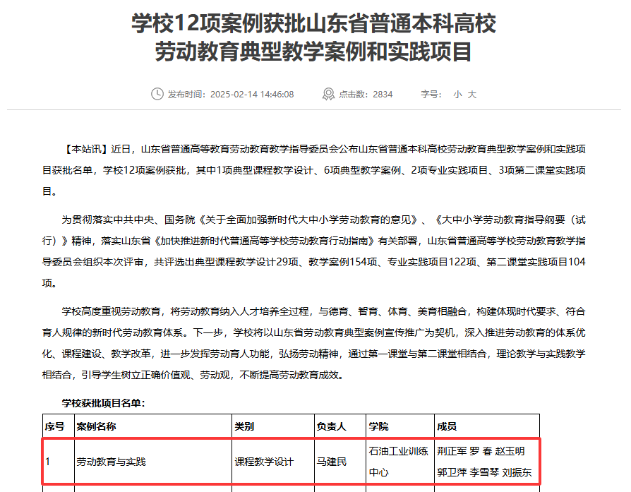 中心对标国家一流课程建设标准,紧扣新工科建设与工程教育发展方向,以产教融合为核心、数字化转型为引擎,持续深化课程改革与内涵建设,逐步构建融合虚拟仿真技术与AI赋能工程实践的数字一体化课程体系。年内,中心共有2门课程成功入选国家级一流本科课程,实现历史性突破;依托15门实践类课程系统构建泛在化劳动教育课程新体系,相关成果获评“山东省本科高校劳动教育典型案例”与“山东省思政示范课程”,充分体现课程思政与劳动教育协同育人的显著成效。