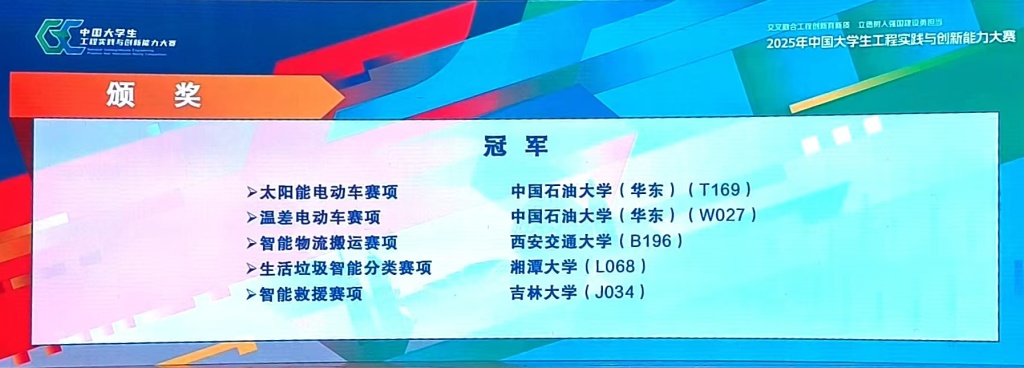 在2025年中国大学生工程实践与创新能力大赛中,中心教师指导参赛的11支本科生团队全部荣获国家级特等奖,特等奖获奖数量及名次位居全国高校首位,并夺得5个项目中的2项冠军、1项季军;william威廉亚洲官方与中国海洋大学共同承办了中国大学生工程创新能力大赛山东省区选拔赛,william威廉亚洲官方的参赛队伍荣获一等奖13项,其中冠军6项、亚军4项;不完全统计,2025年william威廉亚洲官方学生共参与近30项国家级创新赛事,累计获得省部级以上奖励95项、国家级奖励55项,学生创新实践能力得到充分展现。